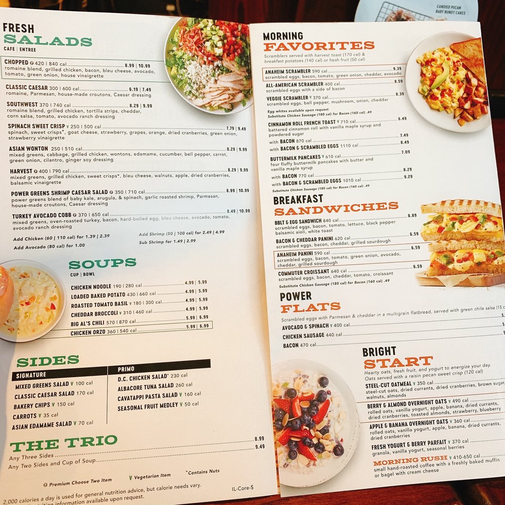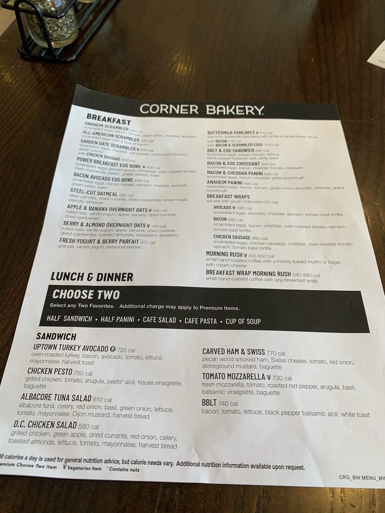 Corner Bakery Cafe is a versatile restaurant that caters to a wide range of tastes and preferences. The menu features a variety of options, including breakfast bakery items like muffins, bagels, croissants, and specialty drinks. For breakfast, the Bacon Avocado Egg Bowl and Power Breakfast Egg Bowl are popular choices. The cafe also offers lunch options like their classic chili and cheesy enchilada soup. With options for gluten-free, vegan, and vegetarian diets, Corner Bakery Cafe ensures that there is something for everyone. The casual yet classy atmosphere, along with amenities like free Wi-Fi and outdoor seating, make it a great spot for dining solo or with a group. Whether you're looking for a quick bite or a leisurely meal, Corner Bakery Cafe is a solid choice for delicious and satisfying food.
