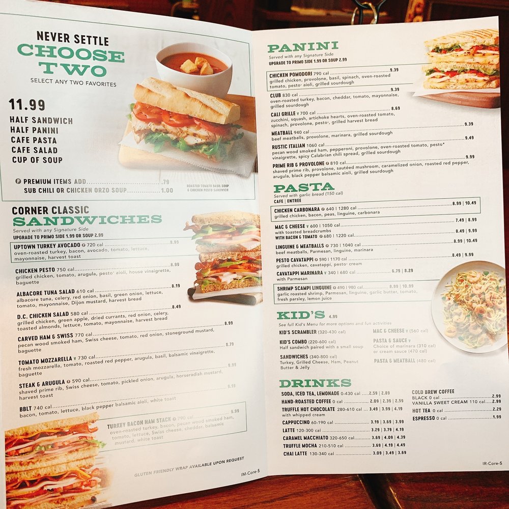 Choose from any* 1/2 panini, 1/2 sandwich, cup of soup, cafe salad, cafe pasta *premium choices may generate an upcharge at some locations